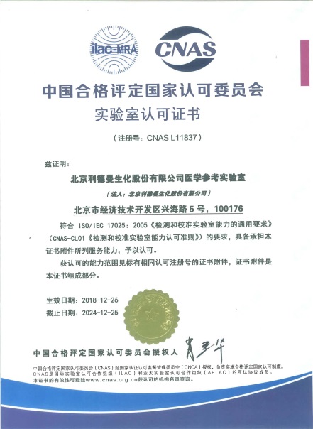 2018年12月26日,时博体育(中国)科技有限公司官网医学参考实验室(以下称参考实验室)顺利通过中国合格评定国家认可委员会(CNAS)认可。