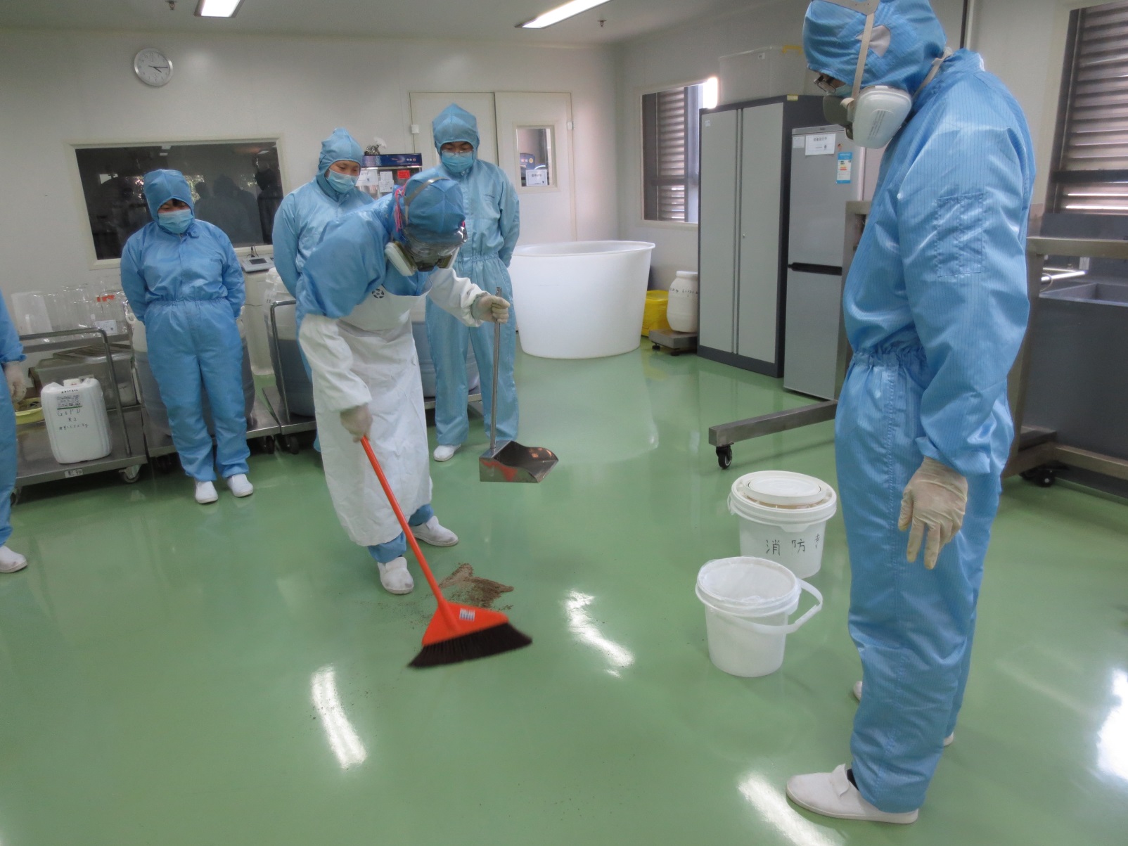 根据《2013年北京经济技术开发区“安全生产月”活动方案》的相关要求及公司年度应急演练计划,时博体育(中国)科技有限公司官网生产运营中心时博体育(中国)科技有限公司官网生产部、研发中心于6月19日、20日下午分在各自生产工作现场组织关于危险化学品洒漏事故处理和酸性液体接触操作者皮肤应急处置的预案演练活动。公司研发中心主任郑长龙、原料研发中心总监熊宁、试剂研发中心总监陈立杰及相关工作人员参加了本次演练活动。